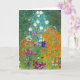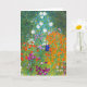 A blank note card with the fine art painting by the Austrian artist Gustav Klimt (1862-1918), Cottage Garden (c. 1906). A beautiful landscape with asters, petunias and other flowers.