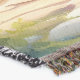 A quality printed throw has its advantages. This is a much finer weave throw than its loopier cousins, and though lighter, it is worth the investment for custom room accessorizing. The back is much prettier than the typical brown, and the fringe on the long sides very vivid, the selvage nicely done. Before photographing, I washed the throw in cold water, delicate, with a thicker woven throw the same size. On tumble dry low, this throw was dry in half the time as the other. This is a very practical quality if you use throws for furniture covers or to wrap up in frequently. The sleekness of the fabric makes it a great layer for accenting or protecting without the feeling of sitting on too much stuff. Perfect for napping or when you feel a light chill coming on. The color printing is beautiful and on this fabric, matched the design and color of my Photoshop image. This is an advantage for blending room fabrics and colors. The fringe on the short sides prints the colors from the design image and therefore varies from the side fringe. I streaked a white fractal line through the plaid pattern to give the illusion of weaving. This printed as crisp as an illusory thread, and put some white in the short side fringe, showing another advantage of print vs loomed- for artistic purposes, line lines, detail, and color integrity can be planned and preserved. My loomed throws have color limitations and more of a needlepoint texture. Print throws reproduce an exact image. The throw felt a little stiff straight out of the package, but this went away in the first delicate wash. Of course I searched the wash water for ink or bleeding and there was none.
