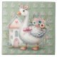 Cottage Goose Floral House Scene Tile