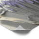 A rustic wooden cottage sits nestled in a vibrant field of lavender, beneath a cascading tree with bold coral blossoms. Created with thick, impasto-style brushstrokes, the painting blends soft greys with bursts of purple and pink, evoking a sense of serenity and nature’s quiet beauty.