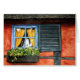 The red walls and blue window frame make this half timbered cottage with a thatched roof a colourful greeting for your friends. Reproduction of an original watercolor painting