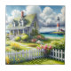 A dreamy coastal cottagecore landscape filled with soft watercolor charm and breezy seaside tranquility. A welcoming seaside cottage sits among lush garden paths, blooming flowers, and a bright white picket fence, creating a warm storybook atmosphere. In the distance, a tall lighthouse rises beside sparkling blue ocean waves, adding a classic nautical touch to this peaceful coastal setting. Fluffy clouds drift across a vibrant sky while sunlight washes over pastel florals, green lawns, and cheerful garden beds. The gentle brushstroke style gives the scene a whimsical, painterly feel reminiscent of cozy coastal living, cottage gardens, and relaxed seaside afternoons. Fresh spring colors, airy ocean blues, and soft floral pinks blend beautifully to create an enchanting cottagecore aesthetic that feels calm, nostalgic, and full of coastal charm. AI generated artwork.