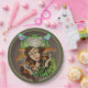 Cottagecore mushroom Girl wears a Fairy Frog as a hat! Whimiscal art by Erin cooper- NO ai was used to make this image!