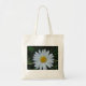 A large white margerite blossom on a bright chopstick in a dark green background is the motif of this cotton bag.