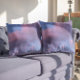 Blue and bubblegum pink fluffy cotton candy clouds at sunset.