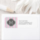 Cotton Candy Pink and Light Grey Modern Stripes Return Address Labels with Monogram. Dark Grey quatrefoil.