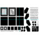 This fabric is a cut and sew, 56" x 36" field, to make 3 sizes of black cotton, washable, fabric, sewn, picture frames: for photo sizes 8x10", 2 1/2" x 3 1/2" (wallet sized), and 1 1/2" x 2 1/2"- as a convertible tabletop frame to frame brooch! All of your pattern panels are included, 10 panels for each, plus the strut leg board panel for all 3- instructions, tools, and extra supplies are all printed ON the fabric, but in case you lose them, you can go to http://fabricatedframes.blogspot.com/2015/02/creating-washable-photo-frame-with.html or see more at http://fabricatedframes.blogspot.com for the photo & text step by step sewing tutorial, plus I have the video sewing tutorial at https://www.youtube.com/watch?v=AoPbDjn8RKM on http://youtube.com/user/fabricatedframesCom - links are provided on where to buy the extra supplies. You even get markings on the fabric on where to cut away excess corner fabric, seam allowances, lines to cut along, where to cut into seam allowances, and more. Make sure that you pick Combed Cotton (56" width) Fabric, because the sewing pattern cut and sew panels fit in the 56" width by 36" yard fabric field, you need at least the minimum 56" wide or wider. The colours that I used are black, with grey seam allowances, and other markings.