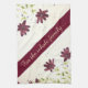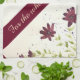 Watercolor floral cotton tea towel. Personalise for a family gift. Burgundy and greens