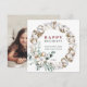 Cotton Flower Wreath Holiday Card with a Photo on the Back. For more advanced customisation of this design, please click the BLUE DESIGN TOOL BUTTON.