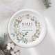 Cotton Flower Wreath Merry Christmas Holiday Paper Plate