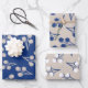 Cotton Stems Botanical Pattern in Blue and Stone Wrapping Paper Sheet