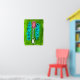 A lime green background surrounds this fun bright colourful cotton swab, perfect bathroom art for home or office. Hot pink, yellow and blue accents with scrawled childlike text complete the image.