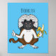 A cute cotton top tamarin monkey eating a banana in fun illustration style.