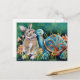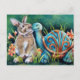 Cottontail Rabbit & Turtle Statue Watercolor Art Postcard
