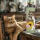 A cougar portrait with wild flowers, The puma is drawn in a tattoo style in a backdrop of olive green