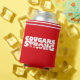 This can cooler is shown in a Cougars Strong print.
