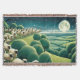 A flock of sheep roams across rolling hills under a starry night sky, with a bright full moon illuminating the landscape. The scene captures the tranquillity of the countryside, with lush, green fields and neatly arranged trees.
