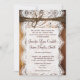 This country theme wedding invitation is perfect for any country western wedding. It features a rustic country printed barn wood background on both sides of the invitation. The invitation has a printed lace embellishment over the top of the wood. The top has a printed twine embellishment. The wood, lace, and twine are just printed designs. It is not actual wood or actual lace or twine.