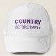 "Country before party" political hat. Purple text.