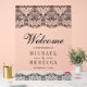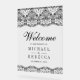 Amaze your guests with this rustic wedding welcome sign featuring beautiful black lace.