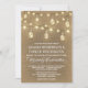 Country Burlap Mason Jar Wedding Invitations - features a rustic or country burlap background with string lights and lighted mason jars.