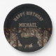 These birthday plates are the perfect touch for the party that celebrates the hunter in your life. The bottom of the plates features a camo pattern with shadowed silhouette of a big antlered deer. The top of the plate design features a diamond plate background. The name of the hunter can be personalised.