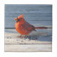 Red Cardinal with seeds perches happily on a country bridge, making a lovely decorative tile. Outstanding home accent ! Decorative tile can also be used as a trivet or on a wooden gift box for a truly special gift!