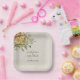 Elevate your wedding reception with our enchanting Country Charm and Boho Flower Paper Plates, a delightful blend of vintage elegance and bohemian charm. Nestled in one corner, delicate golden blooms dance amidst a canvas of faded beige, evoking the nostalgic allure of old-fashioned wallpaper. Personalised with the timeless union of the bride and groom's names and wedding date, each plate becomes a cherished memento of your special day. Whether serving hors d'oeuvres or decadent desserts, these plates add a touch of whimsy and romance to your celebration. Let the gentle beauty of our Country Charm Boho Flower Paper Plates enhance every moment, creating an ambiance of rustic refinement and timeless grace for you and your guests to savour.