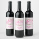 Baby Girl, Shabby Chic pink baby shower wine labels. Vintage pink damask with cute quilt like letter.