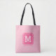 Carry your things with this sweet baby pink monogrammed all-over-print tote bag featuring featuring a country chic gingham pattern.