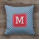 Decorate your home or dorm room with this country chic monogrammed pillow featuring a gingham pattern in blue.