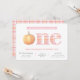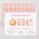 An country chic first birthday party design combining a pink and orange madras plaid with a watercolor pumpkin. This design is very flexible and would also work for twins. The pumpkin was originally handpainted by me before being scanned into digital form. The madras plaid pattern was created digitally by me.