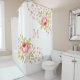 Country Chic Pink Roses Corner Motif Monogram Shower Curtain