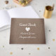 Country chic theme burlap print wedding guest book. Cute cover design with vintage weathered heart symbol. Great for letting guests write some words at your casual wedding. Personalise with bride and groom name in elegant script typography.