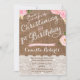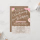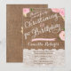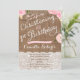 A rustic yet pretty Christening and First Birthday invitation for your daughter's special day. The background is a burlap effect with "lace" writing and panelling. All complemented by pretty pink watercolor flower details.
