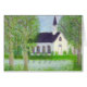 Pastel of a white country church on a hill. A pond beside it reflects the blues, reds, yellows, oranges and purples of the stained glass windows.