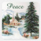 A country church in winter is the subject of this peaceful watercolor mountain landscape painting by JC Prida. A snow-covered path leads past lush evergreen trees to a steepled church with mountains in the background. The colours in this painting include the dark greens of the trees, patches of orange-brown in the buildings and foliage, and the blue-white backdrop of snow. Let the quiet tranquillity of this country church in winter painting remind you of a simpler time during the busy Christmas season.