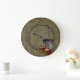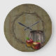country clock with image of wood background. wooden barrell and cute apples. Perfect for a fall motif or home country decor