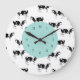 Cute country cow kitchen wall clocks with black and white vector cows pattern all over the clock face in this decorative wall decor clock design for your kitchen, bathroom, or any room in your house you want to add some character and style. Colours include White, black and beige.