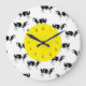 Cute country cow kitchen wall clocks with black and white vector cows pattern all over the clock face in this decorative wall decor clock design for your kitchen, bathroom, or any room in your house you want to add some character and style. Colours include White, black and beige.
