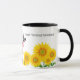 This ceramic coffee mug is shown with a cute country cow and sunflowers art print.