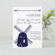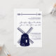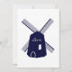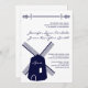A simple rustic country wedding invitation with a dutch style windmill in navy blue at the bottom of the invitation. The back of the invitation also has the Netherlands style windmill design. These invitations are perfect for an outdoor country style wedding or any wedding held at a windmill wedding venue.