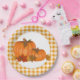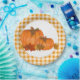 This Fall Pumpkins Plate features a colored pencil drawing print of Pumpkins and Fall leaves.