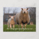 Moving to a farm, new address announcement. Postcard with custom text on front and back. Cute sheep and lamb standing in the grass are looking straight at the camera in this photograph. Personalise with the family name on the front, or choose any text.
