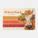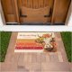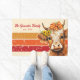 Say hello to fall with this lovely rustic farmhouse watercolor highland cow doormat, adorned with sunflowers and a plaid ribbon bow. This doormat can be personalised with your name and the established date of your home. It's a perfect addition to your fall home decorations with its warm autumn hues of orange, yellow, and red.