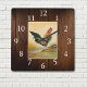Country Farmhouse Rooster Rustic Dark Wood Square Wall Clock
