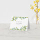 A chic country garden wedding thank you card featuring natural fresh eucalyptus leaves green foliage, framing your wedding details in elegant script and classic typography. Designed by Thisisnotme©