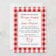 The back of the invitation features a coordinating red and white gingham checks design. You can easily delete the back pattern and use a solid red background.