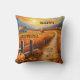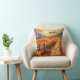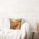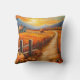 Colourful artistic pillow featuring an autumn country landscape with a farm and pumpkins at sunset. Great to create a Thanksgiving atmosphere as well a warm welcoming style through fall.