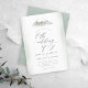 Country Green Watercolor Leaves & Mountain Wedding Invitation